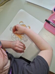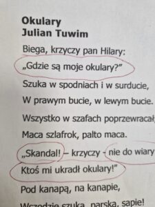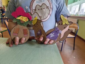 W następnych dniach dzieci stworzyły swoje własne pacynki, które później wykorzystaliśmy do zrobienia teatrzyków cieni. Nie zabrakło też uwielbianej przez dzieci zabawy w kalambury. Jednak żeby uczniowie poczuli się jak prawdziwi aktorzy spróbowali odegrać rolę pana Hilarego ze znanego wszystkim wiersza „Okulary” Juliana Tuwima. Dzieci uczyły się jak trudno pokazywać i rozpoznawać emocje. A tych nie brakowało!