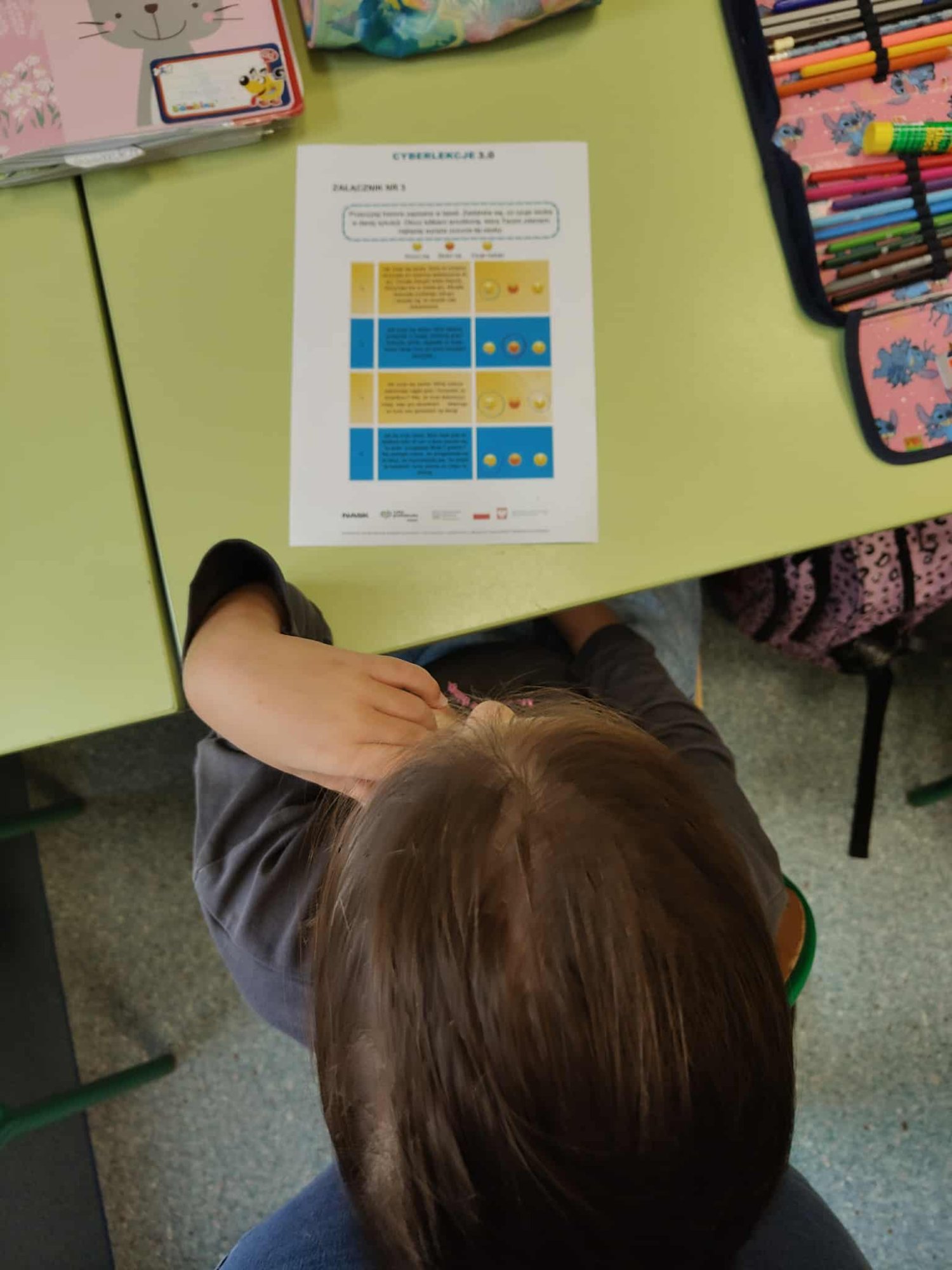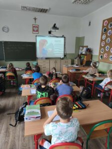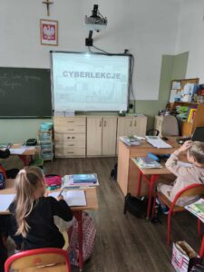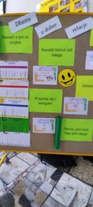 W wybranych klasach zajęcia prowadzili również szkolny pedagog i psycholog. Ich tematyka obejmowała m.in. radzenie sobie z emocjami, rozwiązywanie konfliktów oraz wzmacnianie odporności psychicznej uczniów. Najmłodsi uczniowie, z klas I–III, uczestniczyli w zajęciach opartych na materiałach edukacyjnych „Moja bezpieczna sieć”. Dzieci dowiedziały się, jak bezpiecznie korzystać z internetu, jak rozpoznać zagrożenia w sieci i jak wspierać się nawzajem – zarówno online, jak i offline. Szczególnym wydarzeniem tygodnia był Dzień Pozytywnego Słowa. Przy wejściu do szkoły stanęła tablica, na której uczniowie umieszczali dobre myśli, pozytywne komunikaty i słowa wsparcia dla koleżanek i kolegów. To symboliczny, ale bardzo ważny gest budowania wspólnoty i atmosfery życzliwości. W ramach działań skierowanych do rodziców zachęcaliśmy do rozmów z dziećmi na temat bezpieczeństwa, szacunku i odpowiedzialności rówieśniczej. Rodzice otrzymali również link do strony internetowej zawierającej wskazówki, jak rozmawiać z dziećmi na trudne tematy, a także krótki film edukacyjny, który wspiera budowanie bezpieczeństwa emocjonalnego dzieci.