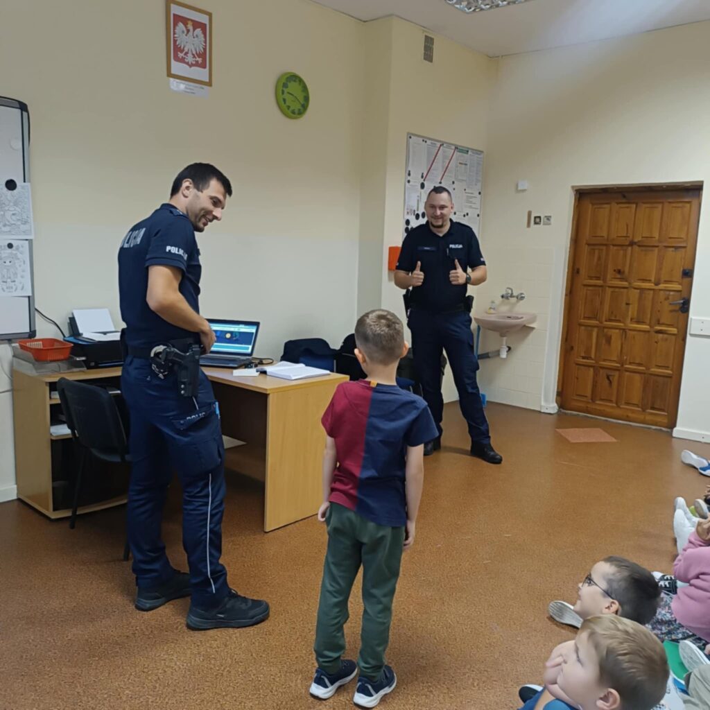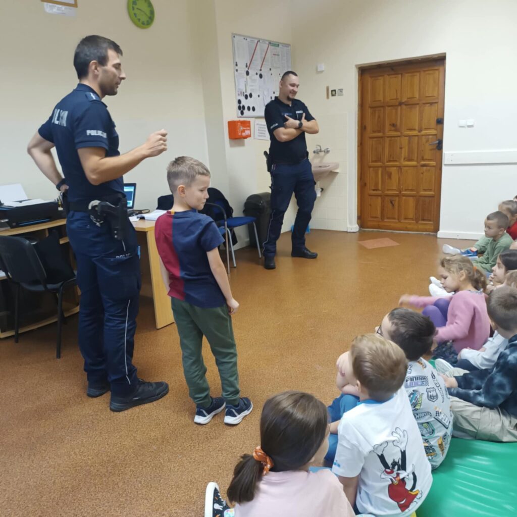 Szczególną uwagę poświęcono również zasadom poruszania się na rowerze. Funkcjonariusze przypomnieli, że każdy rowerzysta powinien być wyposażony w kask, sprawne oświetlenie oraz znać podstawowe przepisy ruchu drogowego. Dzieci dowiedziały się również, kiedy mogą samodzielnie poruszać się rowerem po drogach publicznych oraz jak zachować ostrożność w pobliżu samochodów.