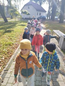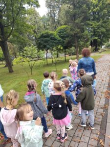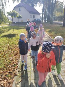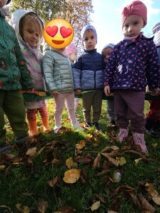Podczas spacerów i przechadzek dzieci z wielkim zainteresowaniem obserwowały zmieniającą się przyrodę. Kolorowe liście, kasztany, żołędzie i grzybki ukryte w trawie wzbudzały ogromny zachwyt.
