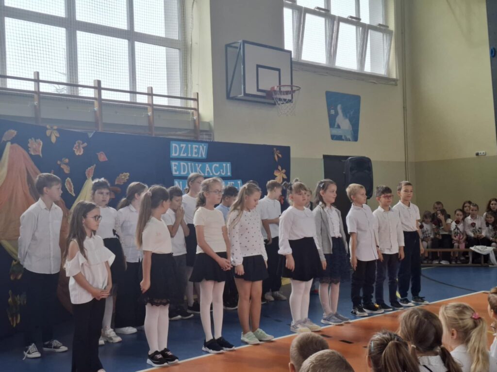 Z okazji Dnia Edukacji Narodowej w naszej szkole odbyła się uroczysta akademia, podczas której uczniowie złożyli serdeczne życzenia nauczycielom i pracownikom szkoły. W części artystycznej wystąpili uczniowie klas 3a, 3b, 3c, 7b oraz 8b, prezentując wiersze oraz piosenki poświęcone pracy nauczyciela. Występy uczniów spotkały się z gorącym aplauzem publiczności, a cała uroczystość przebiegła w miłej