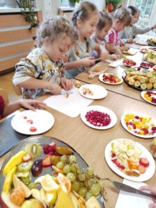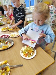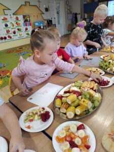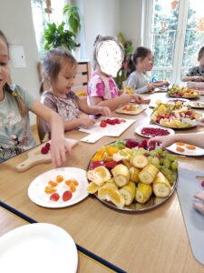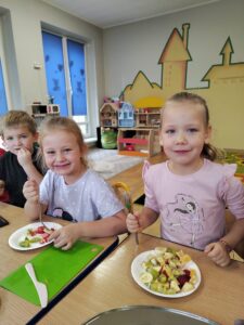 🍎🍊 Na zakończenie tygodnia o zdrowym stylu życia w grupie III – pyszna, kolorowa sałatka owocowa! 🥝🍓🍌🍇 Pełna witamin, energii i naturalnej słodyczy – idealny sposób, by celebrować zdrowe nawyki 😉