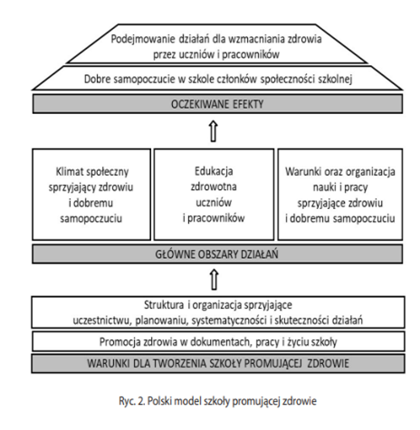 w kontekście własnego systemu edukacji, czynników kulturowych, społecznych i ekonomicznych, akceptując przyjęte podstawowe zasady i wartości takiej szkoły. Szeroki zakres promocji zdrowia i całościowego podejścia do promocji zdrowia w szkole utrudnia sformułowanie prostej uniwersalnej definicji SzPZ. Definicję SzPZ przyjętą w Polsce w 2015 r. zamieszczono w ramce.